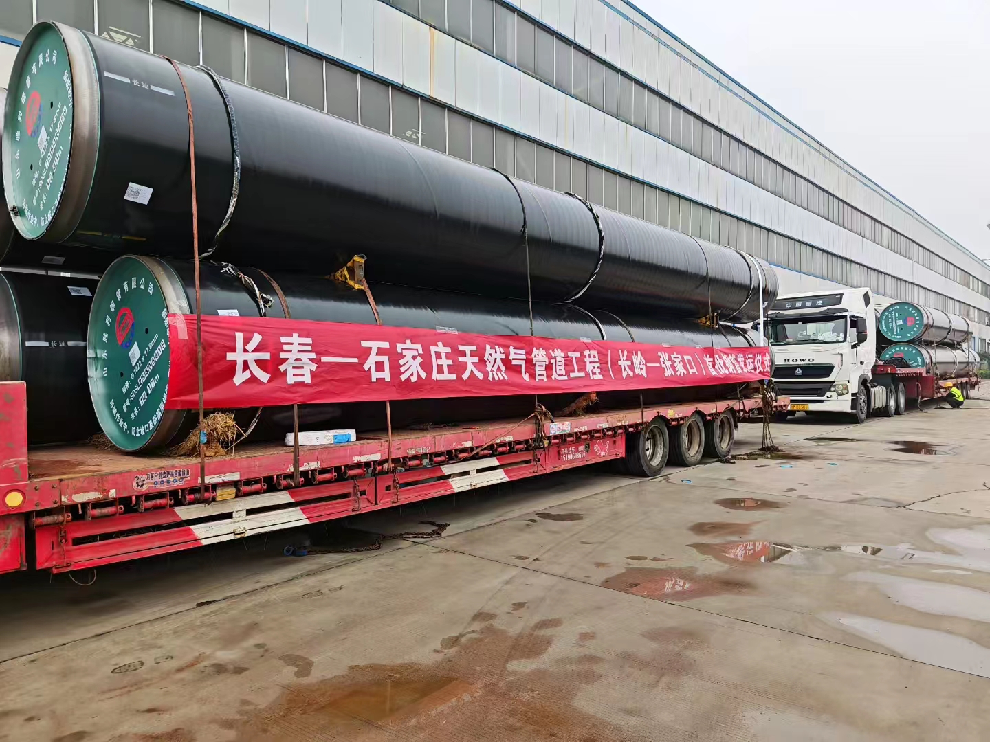 ? ?助力國家能源管道建設(shè),凝聚力量供保長石管道。10月08日上午,長春一石家莊天然氣管道工程(長嶺一張家口) 首批鋼管發(fā)運(yùn)儀式在山東勝利鋼管有限公司舉行。公司副總經(jīng)理王碩、銷售公司、物流中心及管線監(jiān)理、物流承運(yùn)單位參加了本次發(fā)運(yùn)儀式。首日首批次該項目用Φ1422*17.8mm常溫型3LPE普通級+環(huán)氧型內(nèi)減阻涂層螺旋縫埋弧焊鋼管裝車由山東勝利發(fā)往內(nèi)蒙古赤峰中轉(zhuǎn)站,標(biāo)志著公司承接的長石天然氣管道項目產(chǎn)品正式陸續(xù)開始交貨。